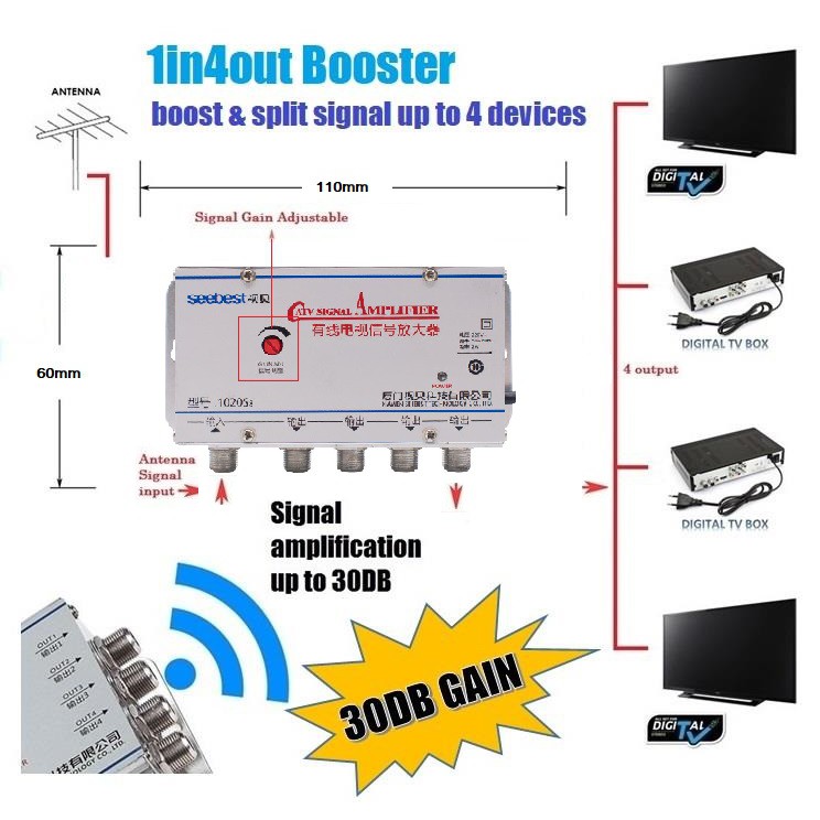 Booster Digital Tv Antenna Signal Line Booster Splitter 1 In 4 Out Shopee Malaysia